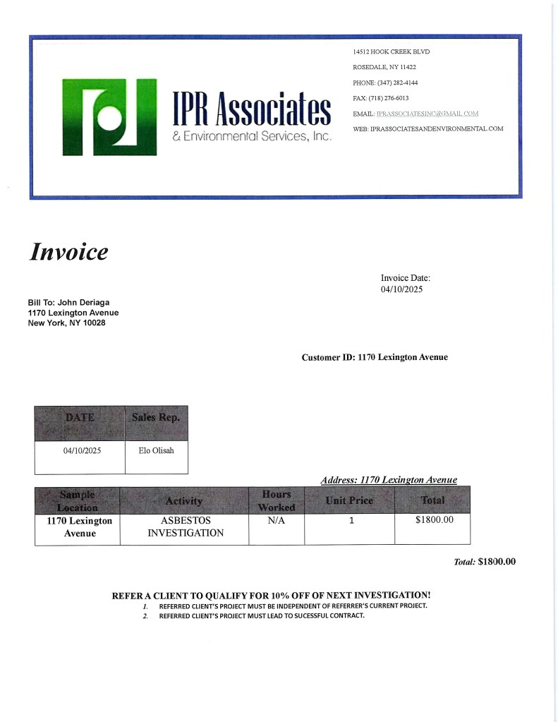 Thank you for choosing IPR Associates & Environmental Inc. !